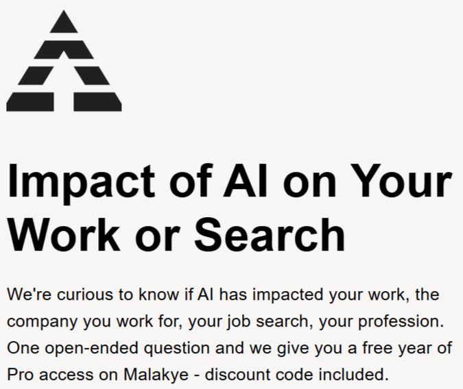 Here’s our 1 quick Q: Has AI impacted your work, company, profession, or job search?