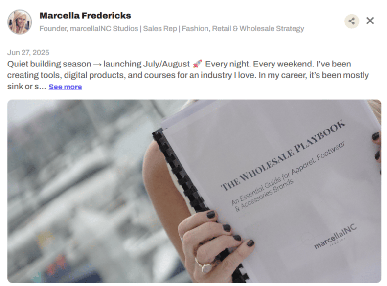 Marcella Fredricks is cooking up something we can all agree is a great addition to what’s available in life. The industries we’re in definitely are not publicized as a route for people who go to college, oddly similar how the value of the route of becoming a trades-person is under played. Marcella is making a guide for: • Founders launching lifestyle and sporting goods footwear, apparel or accessories brands • Existing brands who want a better and more efficient way of doing things • Anyone trying to break into the industry but has no idea where to start • Anyone curious about how wholesale works and…. THIS is for the new college grads who’ve ever dreamed about working at brands like adidas, Converse, or Nike - this part is for you. This industry is creative, fast-paced, global, and full of possibility.💫 But somehow, it’s rarely mentioned as a career path in business schools, let alone any classes that could have been extremely valuable and useful “in the real world.”