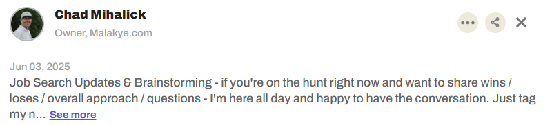 Hunting for a new job opportunity, whether you’re leveling up or your back is against the wall is a fairly solitary process. If you have thoughts or ideas you want to share, hit this link to share and we can have a productive convo about it.