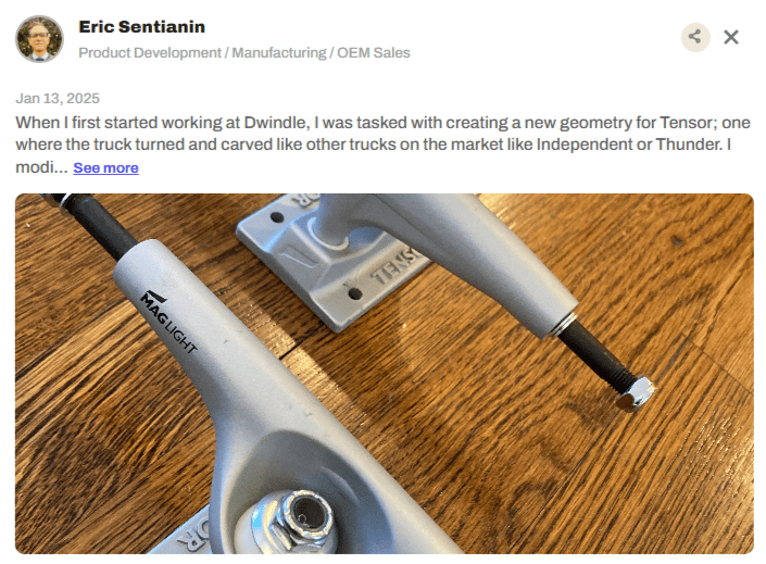 When I first started working at Dwindle, I was tasked with creating a new geometry for Tensor; one where the truck turned and carved like other trucks on the market like Independent or Thunder. |